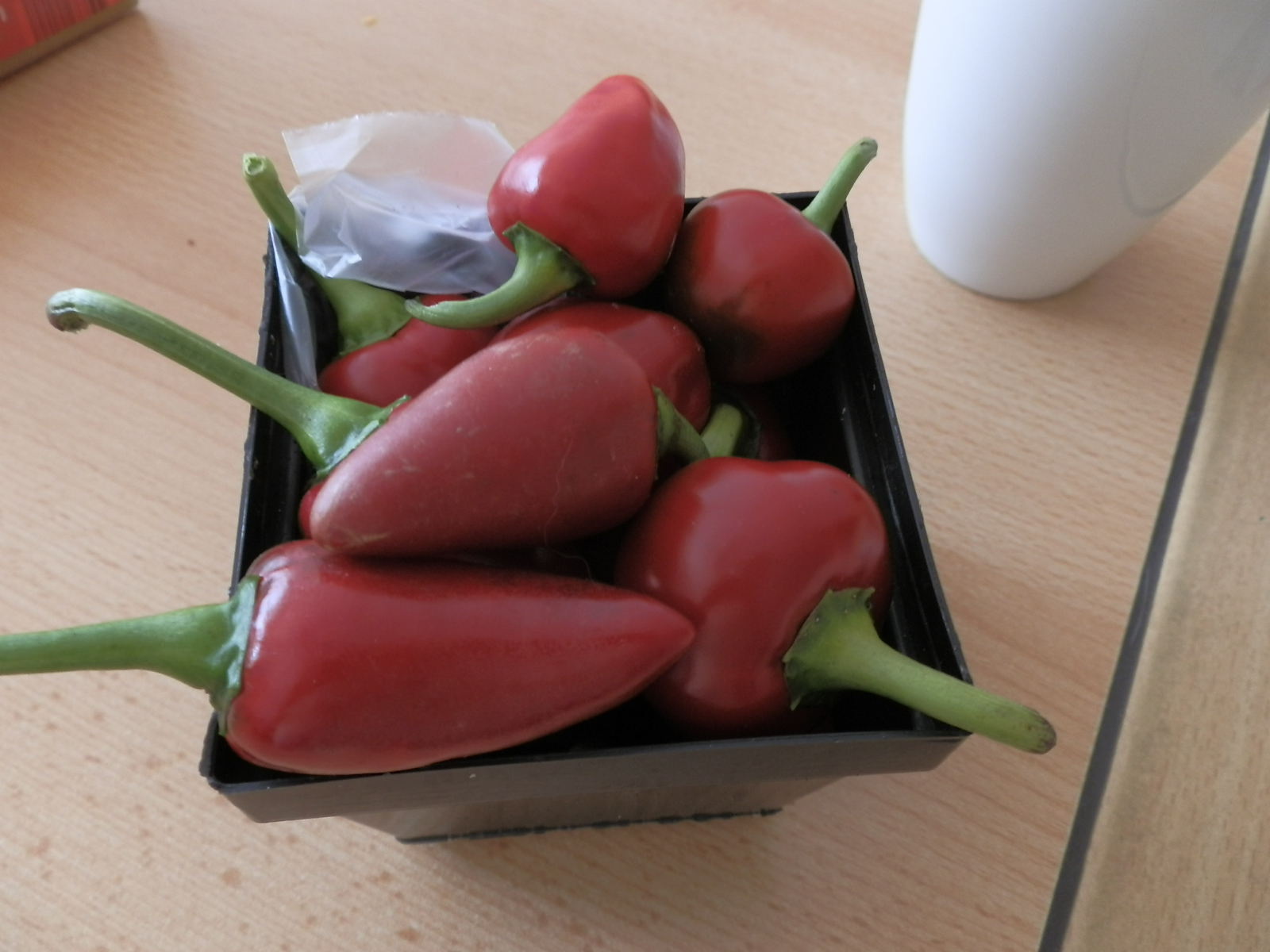 Hab sie dann alle eingesammelt, den Boden geglättet, Weg eingetrampelt, die Tüfken beschriftet (die Sorte heißt übrigens 'Red River') und meinem Chef ins Gewächshaus gestellt. Die gehören ja nicht mir und mit den Kartoffel-Sorten soll's mein Chef angeblich recht genau nehmen.