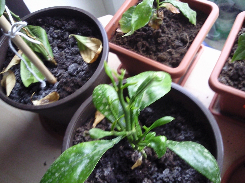 Was könnte das sein? Schädlinge haben sie keine, werden unregelmäsig zusammen mit Banane (die im Moment nicht, da sie zu nass war) und den 4 fast 1-jährigen Kaffeepflänzchen mit Wasser besprüht.