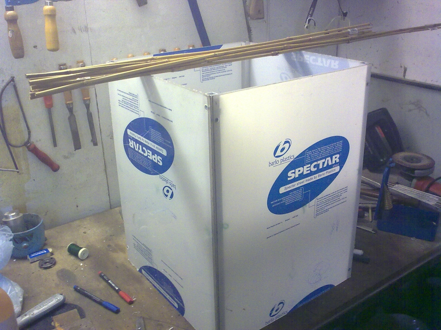 nachdem mein Zimmergewächshäuschen aus Holz ziemlich schnell angefangen hat zu schimmeln, habe ich mich an mein neues "Projekt" gemacht.