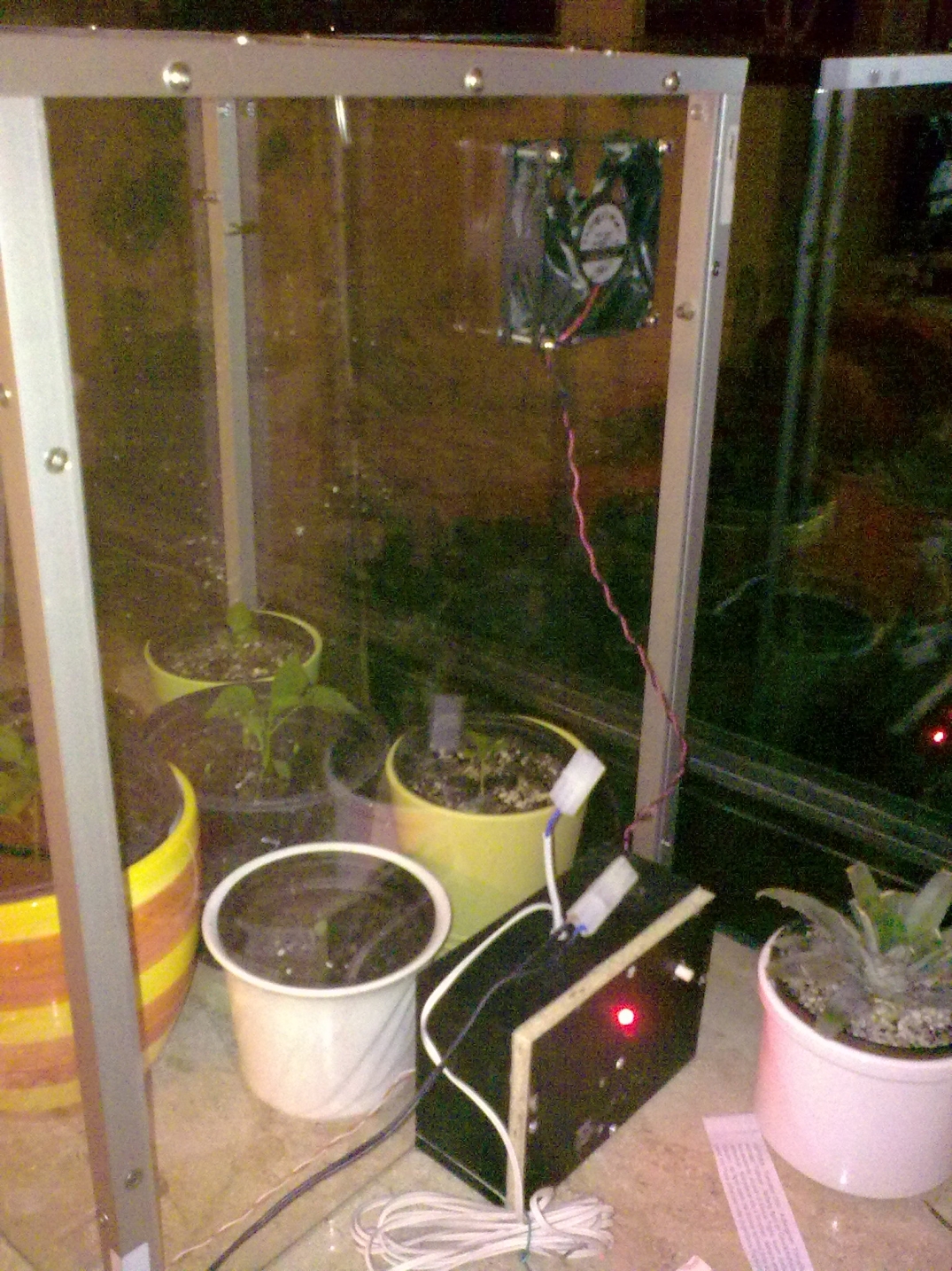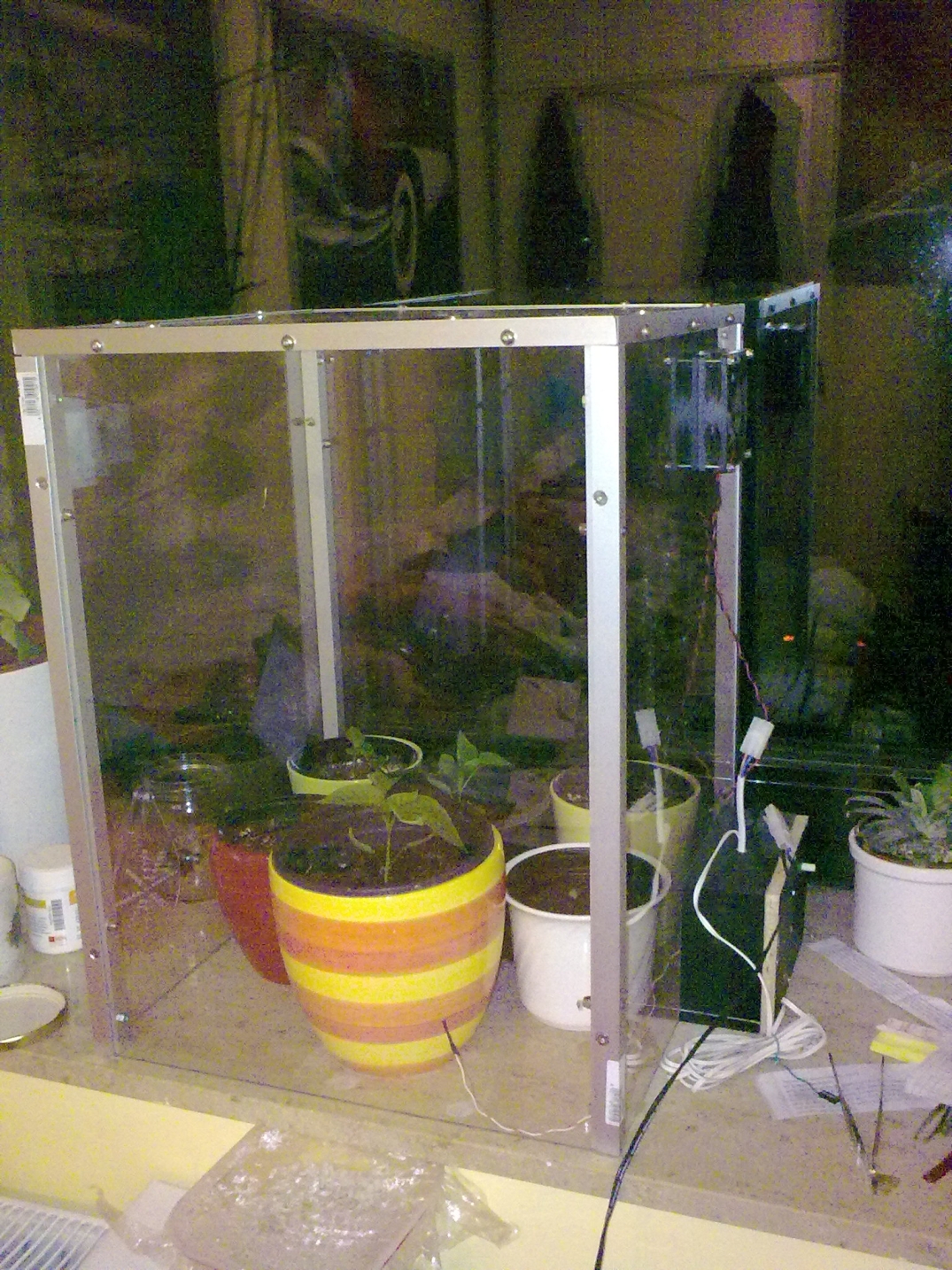 Mein neues Zimmergewächshäuschen besteht aus Alu und Plexiglas (auf den Bildern ist das Plexiglas noch beklebt damit es nicht zerkratzt) und hat die Maße 50cmx50cmx60cm.