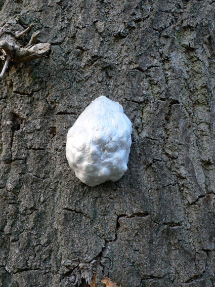 wir haben an einem alten Eichenstamm einen unbekannten Kokon gefunden und wissen jetzt nicht ob da gefährliche Bewohner drin stecken, hat jemand so etwas schon mal gesehen? ca 12 cm hoch und 5 cm dick, leicht glänzende, hell schimmernde Aussenhaut und viele innenliegende Hubbel.