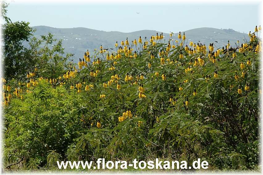 Senna didymobotrya, Cassia didymobotrya - Kerzenstrauch, Erdnuss-Kassie