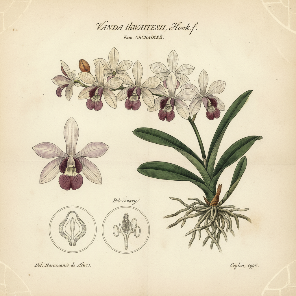 Seit ihrer ersten und einzigen Beschreibung im Jahr 1898 durch den berühmten britischen Botaniker Joseph Dalton Hooker war die Vanda thwaitesii ein Phantom. Hooker selbst hatte die Pflanze nie lebend gesehen; seine gesamte Beschreibung basierte auf zwei detaillierten Zeichnungen des sri-lankischen Zeichners Haramanis de Alwis. Da nie ein Exemplar für ein Herbarium gesammelt wurde, verschwand die Orchidee in den Annalen der Botanik und wurde schließlich für ausgestorben erklärt. Doch die Hoffnung stirbt bekanntlich zuletzt.