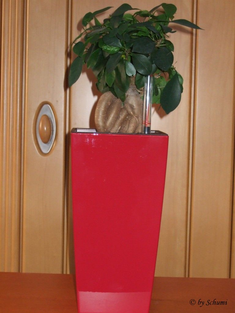 Uff.... bin wohl leider ein wenig zu blauäugig an die Sache gegangen... Mist. Aber bei mir in der Firma haben wir ähnliche "Übertopfe" bzw. Bodenvasen wie meine auf dem Bild und da geht das doch auch? Da ist zwar ein Kulturtopf mit fest integriertem Wasserstandsanzeiger drin, aber der Übertopf sieht wie meiner aus. Kann ich mir denn nicht einfach einen Kulturtopf mit 25 cm (mit seitlichen Schlitzen oder nur unten???) mit Befestigung für Wasserstandsanzeiger holen (dann auch 25 cm) holen und die arme Monstera da reinsetzten?