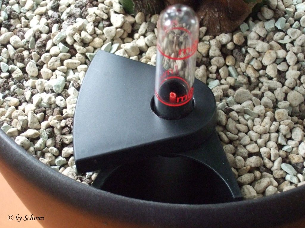 Bei Pflanzen, welche in Töpfen mit Einsatz und Gießanzeiger sind,gieße ich direkt in das Granulat.