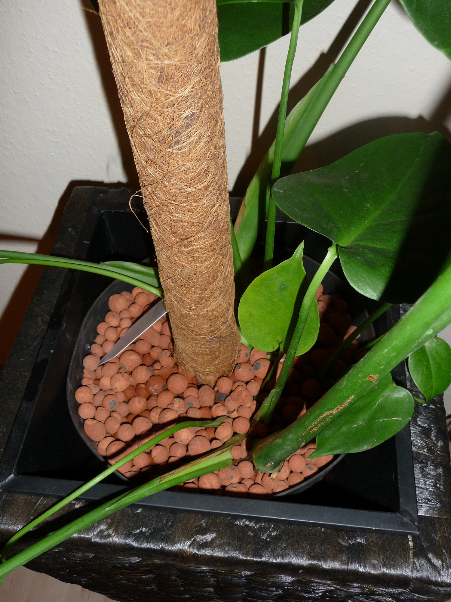 ich bin gerade dabei ,meine Monstera von Erde auf Hydrokultur umzustellen - mein erster Versuch mit Hydro. Ich habe einen Standtopf, der unten hohl ist und einen bepflanzbaren Bereich mit einer Höhe von 27 cm, und Länge sowie Breite 22 cm hat. Würdet ihr mir einen Kulturtopf mit seitlichen Schlitzen empfehlen oder reicht einer mit Löchern im Boden, wie ich ihn im Moment habe? Nun ist meine Überlegung, welche Länge mein Wasserstandsanzeiger haben muss. Ich habe zur Zeit keinen speziellen Kulturtopf mit Ausprägung für Wasserstandsanzeiger o.ä., sondern lediglich einen ganz normalen Plastikkulturtopf ohne Befestigungsmöglichkeit und nur Löchern im Boden. Wie tief muss denn der Wasserstandsanzeiger überhaupt im Topf stecken? Muss er unten den Boden berühren und oben ab dem "Min" aus dem Blähton gucken, in meinem Fall also 27 cm von unten bis Minimum? Oder brauche ich einen kürzeren oder sogar unbedingt einen richtigen Kulturtopf mit Befestigungsfunktion? Ich habe gelesen, dass ich auch irgendwie mit dem Anzeiger dünge und frage mich, ob der Dünger denn überhaupt unten ankommt bzw. ob ich jeden Dünger nehmen kann und wie ich dann dünge? Oh je, ich bin ein absoluter Laie =/