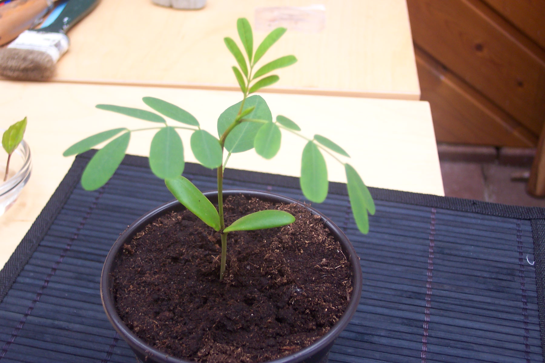 Schaut mal, nachdem ich meine kleine Sesbania entspitzt habe, treibt sie gleich an mehreren Stellen neu aus.