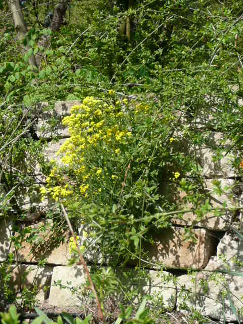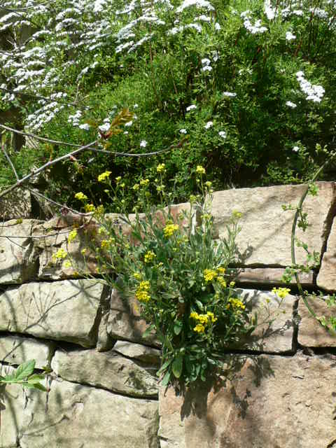 Da wächst eine Pflanze in meiner Trockenmauer, die fühlt sich so richtig wohl. Nun überlege ich, ob sie raus muss, oder ob ich sie hegen sollte!