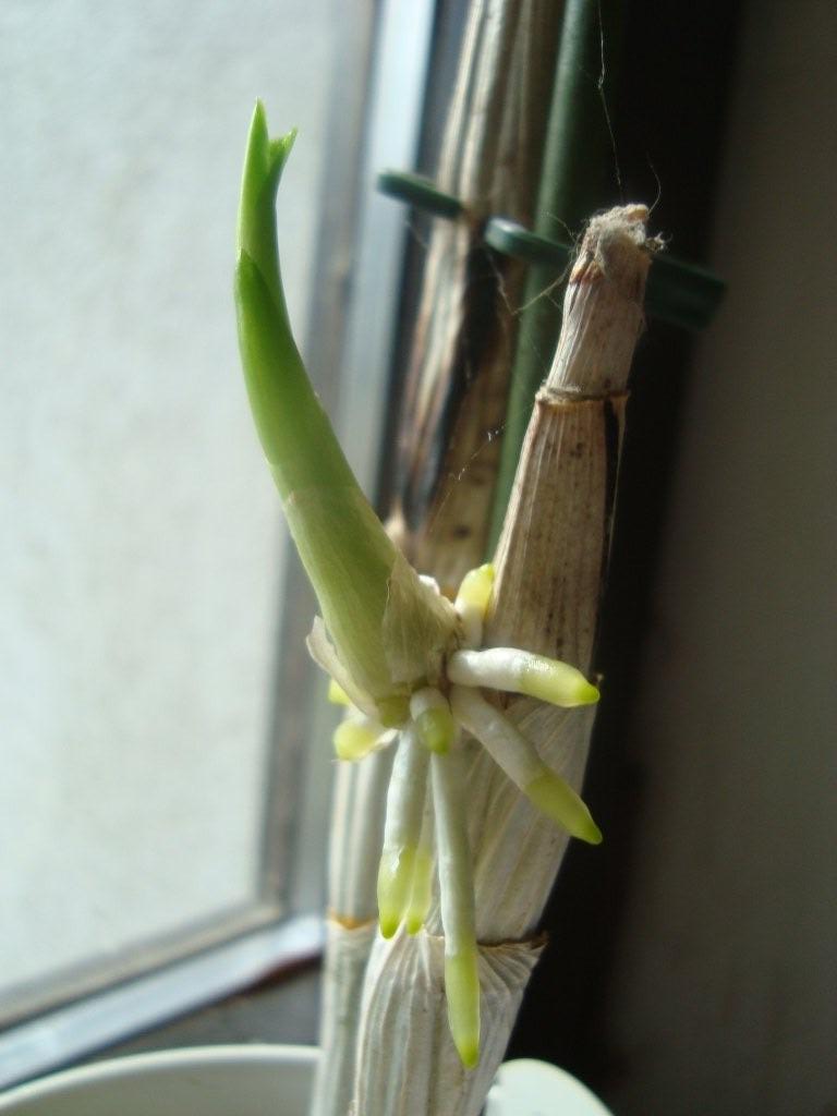 habe diese Orchidee im Dezember zu meinen "unrettbaren" Pflanzen in die Garage gestellt und nicht mehr beachtet. Sie bekam kein Wasser, keine Liebe oder auch nur Aufmerksamkeit.