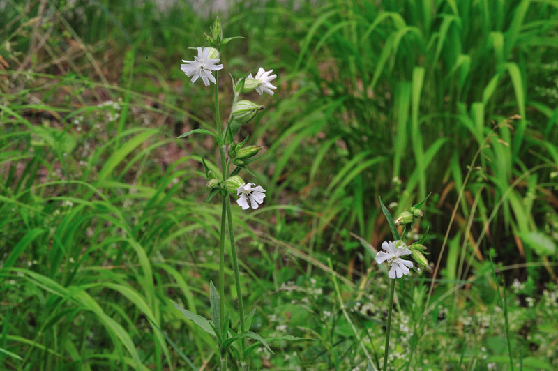 diese wildpflanze hätte ich für das taubenkropf-leimkraut gehalten. stutzig macht mich aber, dass auf allen bildern, die ich kenne, der kelch bräunlich ist. wie man sieht, ist bei meinem exemplar der kelch weiß-grün. standort: lichter waldrand neben ganz jungen fichten.