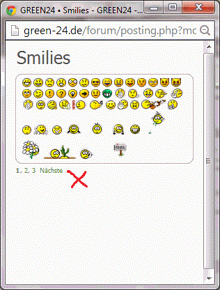 klickt auf mehr smilies anzeigen, dann macht sich ein neues fenster auf, da sind 3 seiten mit den smilies