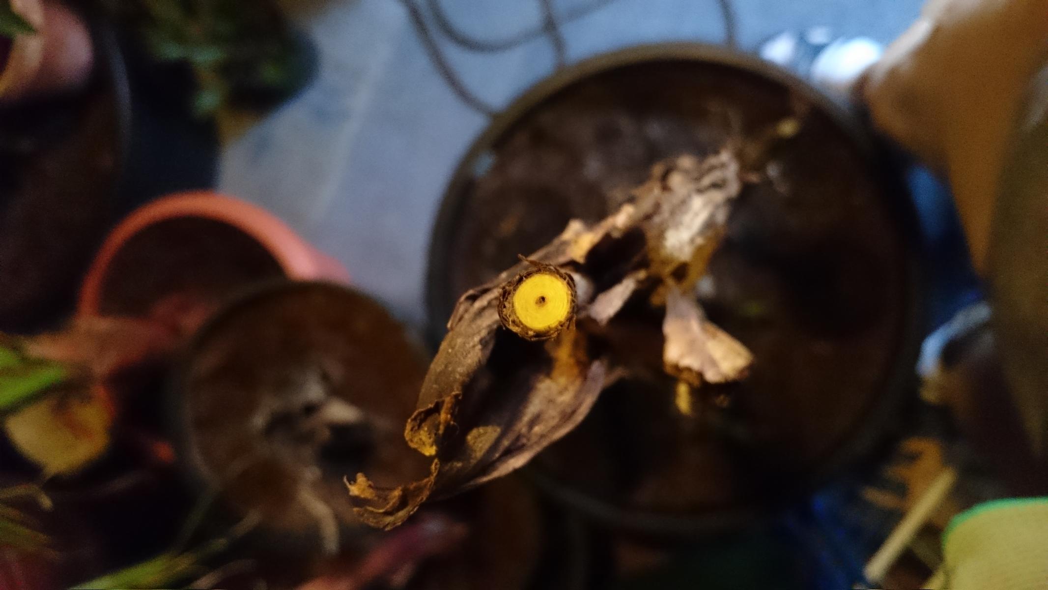 ich habe im Gartenhaus (Thermostat+Heizlüfter min. 3,5°C) meine Palmen, Kakteen und Bananen überwintert. Die Palmen und die große Musa basjoo sehen gut aus, allerdings bin ich mir bei der Musa sikkimensis (ca. 1,2m) unsicher und die Ensete maureliis sehen schlimm aus. Alle Bananen wurden während der Überwinterung nicht gegossen (Restfeuchtigkeit in den Kübeln) und die Blätter bis auf den inneren, neuen Trieb entfernt