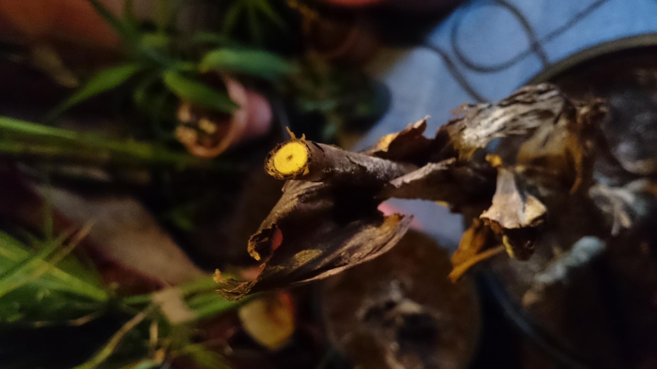 leichter Schimmel, Scheinstamm braun/grün und noch sehr fest & stabil und nicht matschig.