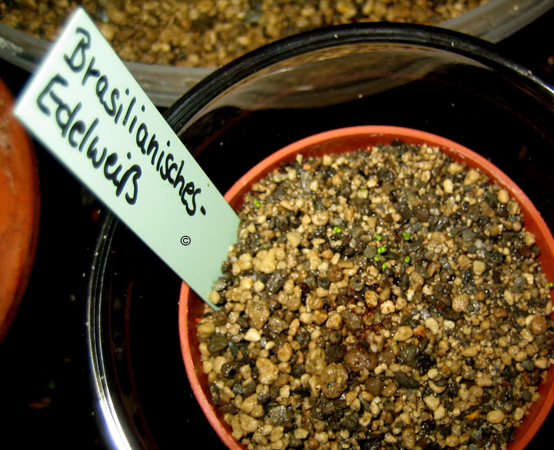 Die mini kleinen Samen habe ich heute unbehandelt auf Bims gestreut.