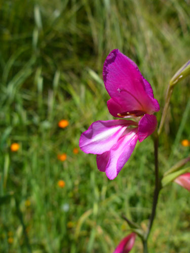 Hmmm ... ich hab mir Bilder all dieser Gladiolenarten angeguckt. Was sie gemeinsam haben, ist die einseitige Ausrichtung der Blüten. Diese sizilianische Wilde hatte das nicht, und die vielen Schwestern, die ich nicht fotografiert habe, auch nicht. Sie hatten auch alle nur sehr wenige Blüten.