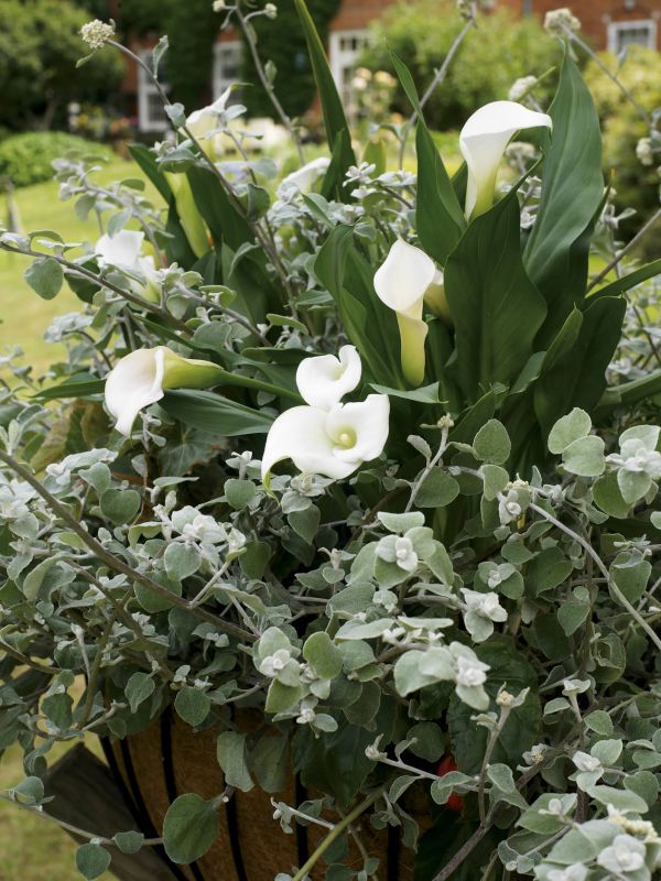 Neben Dahlien und Begonien gedeihen auch viele weniger bekannte Sommerblüher gut in Gefäßen. Noch recht selten ist die Ananasblume mit ihrem exotisch anmutenden Blütenstand. Die Sommerblumenzwiebel des Jahres 2005, die Calla bzw. Zantedeschia, kann ebenfalls gut in Gefäße gepflanzt werden. Sie ist sehr ausdrucksstark und hat große, elegant geschwungene Hochblätter, die den kolbenförmigen Blütenstand umgeben. Diese auffallenden weißen oder farbigen Blätter verleihen ihr eine kostbare Ausstrahlung und bringen tropisches Flair und einen Hauch von Sinnlichkeit auf Balkon und Terrasse. Calla mit weißen Hochblättern passen ausgezeichnet zu silbriggrau belaubten Pflanzen wie der Silberstrohblume (Helichrysum). Auch Lilien, kleinere Gladiolen, Sauerklee und Indisches Blumenrohr eignen sich für den Garten im Topf. Bei der Auswahl der Gefäße führt die Fantasie Regie. Alles, was die Erde zusammenhält, kann verwendet werden - und es darf in diesem Sommer bunt sein. Denn Bunt macht bekanntlich Laune!