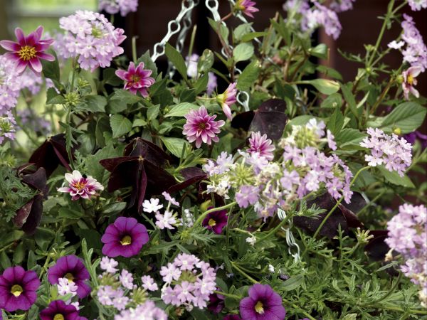 Sowohl Begonien als auch klein bleibende Dahlien eignen sich für die aus England stammende Idee der Hanging Baskets. Ob kahle Bäume, ein Dachvorsprung oder ein Haken an einer Wand - mit Hanging Baskets gewinnt die dritte Dimension an Bedeutung. Üppig bepflanzt bringen sie Farbe in langweilige Ecken und sind ideal, wenn Platz knapp ist. Es lohnt sich, einjährige Sommerblumen mit farblich passenden Dahlien oder Begonien zu kombinieren: Solche gemischten Ampeln sind auch dann noch schön, wenn die Einjährigen längst verblüht sind, denn Dahlien und Begonien bieten über das Ende des Sommers hinaus noch Farbe.
