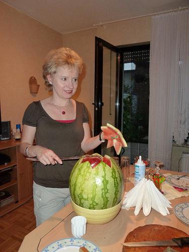 Am nächsten Tag die Honigmelone halbieren und Kugeln ausstechen, die restlichen Limetten achteln, mit dem Zucker mischen und zerstoßen. Anschließen die Melonenkugeln zugeben und mit dem Schnaps übergießen. Das Ganze einige Stunden kalt stellen.