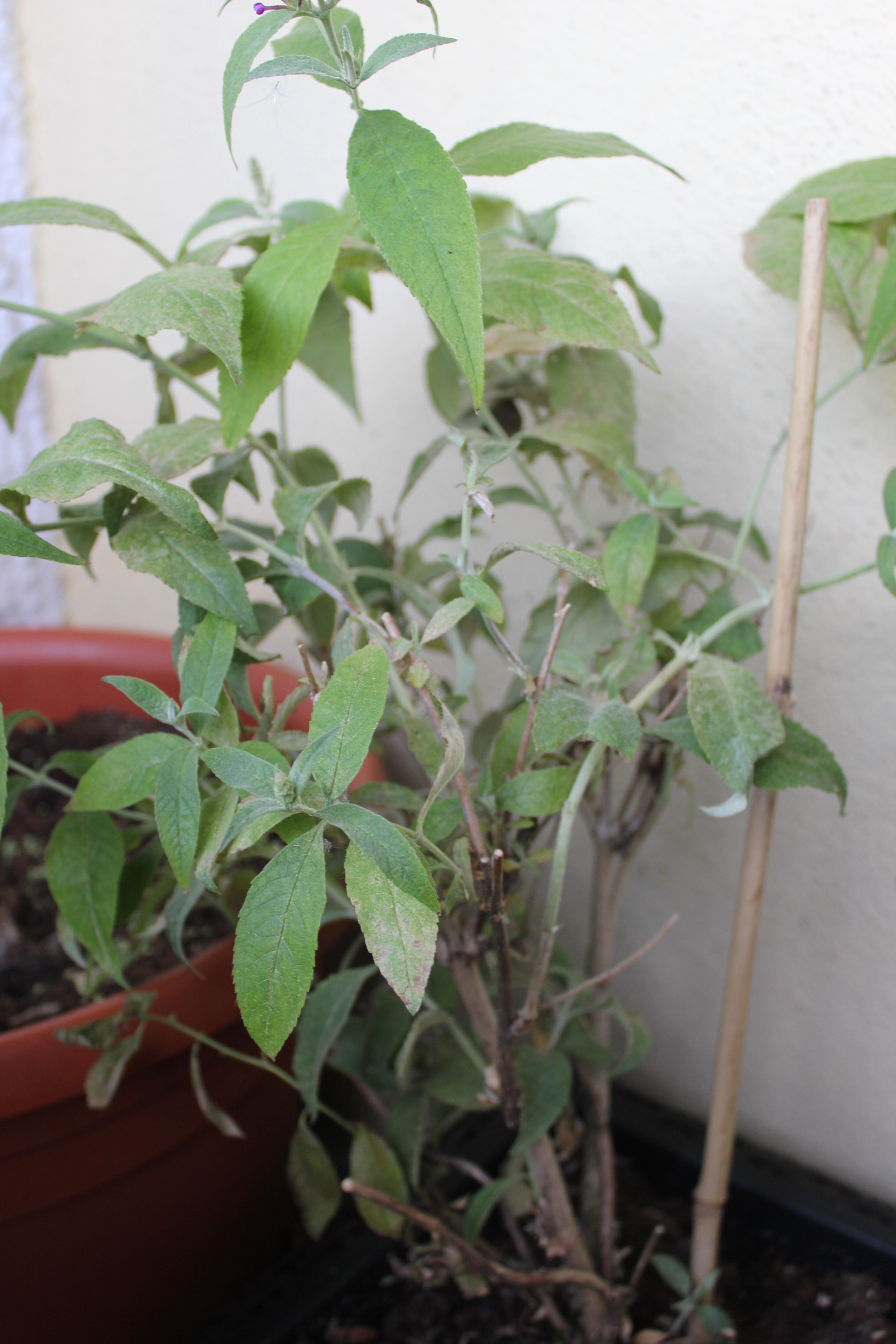 mein Sommerflieder bekommt seit einiger Zeit komisch graue Blätter, wie wenn ein Belag drauf wäre.