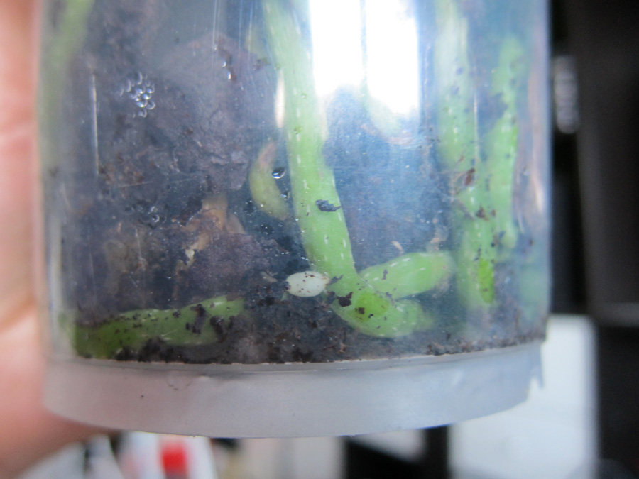 Als ich die weiße gekauft habe war bereits ein kleiner Teil des Blattes schwarz vertrocknet und ein anderes Blatt sieht aus wie angeknabbert. Bis jetzt hat sich an den Blättern jedoch nichts geändert.