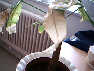 Zuerst dachte ich, da es nur die große traf, das seien Stellen, an die in der Wohnung zu wenig Licht kam, weil ich sie nicht regelmäßig drehte und sie darum an einer Seite vielleicht zu wenig Licht bekamen.