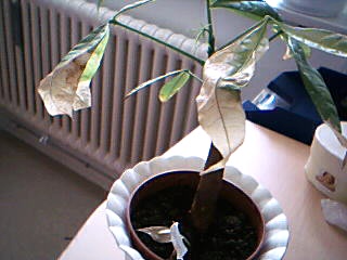 ich habe zwei Pachiras, eine kleine und eine große. Nun haben beide seit kurzem, genauer gesagt, seit dem ich sie tagsüber auf dem Balkon habe, so häßlich veränderte Blätter....