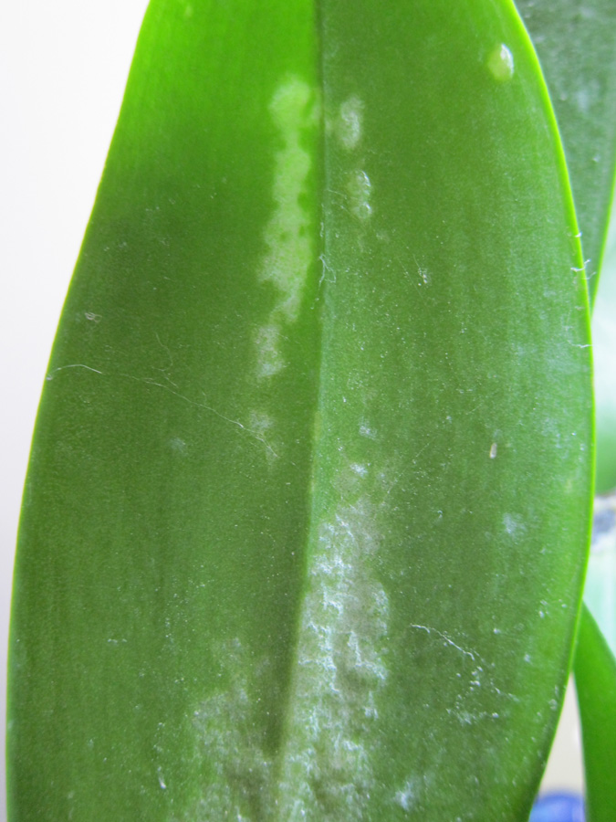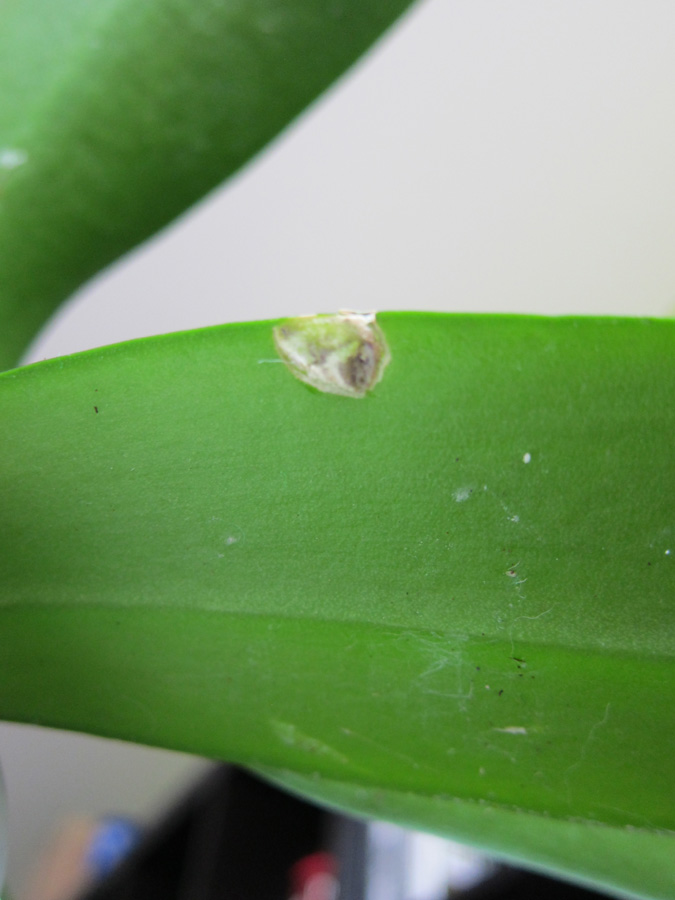 Als ich die weiße gekauft habe war bereits ein kleiner Teil des Blattes schwarz vertrocknet und ein anderes Blatt sieht aus wie angeknabbert. Bis jetzt hat sich an den Blättern jedoch nichts geändert.