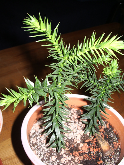 ich habe mir heute Morgen beim täglichen Lüften im Wohnzimmer mal meine beiden Araucarien-Töpfchen angeschaut. Die Kleinen sind schon ganz schön groß geworden.