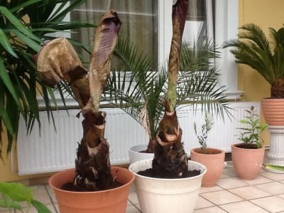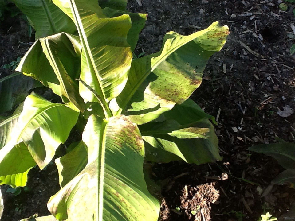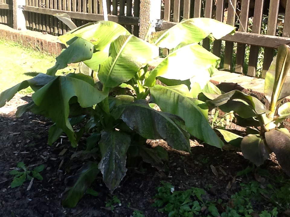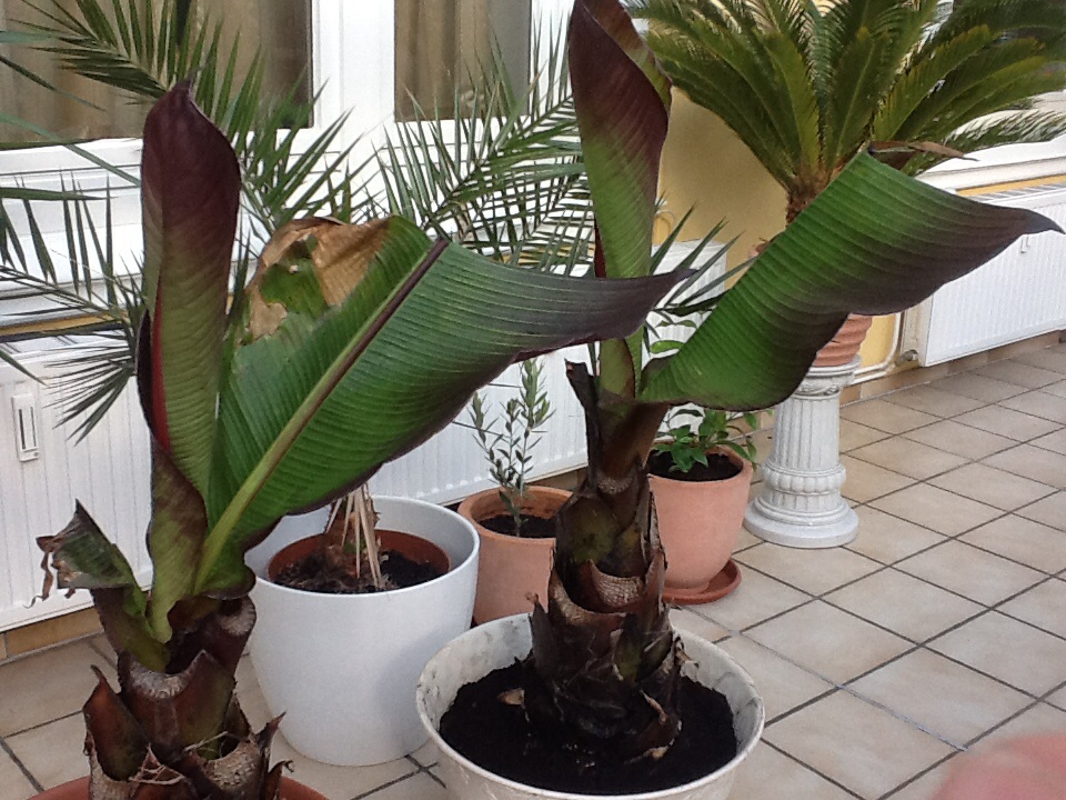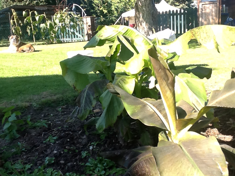 Ich habe mir im letzten Frühjahr eine Winterharte Bananenstaude gekauft. Leider wuchs sie nur sehr spärlich. Kniehöhe, dann war Schluss. Aber Kindel hat sie getrieben und ich brachte sie erfolgreich über den Winter. Diese Saison das selbe Trauerspiel: Kniehöhe und Schluss.