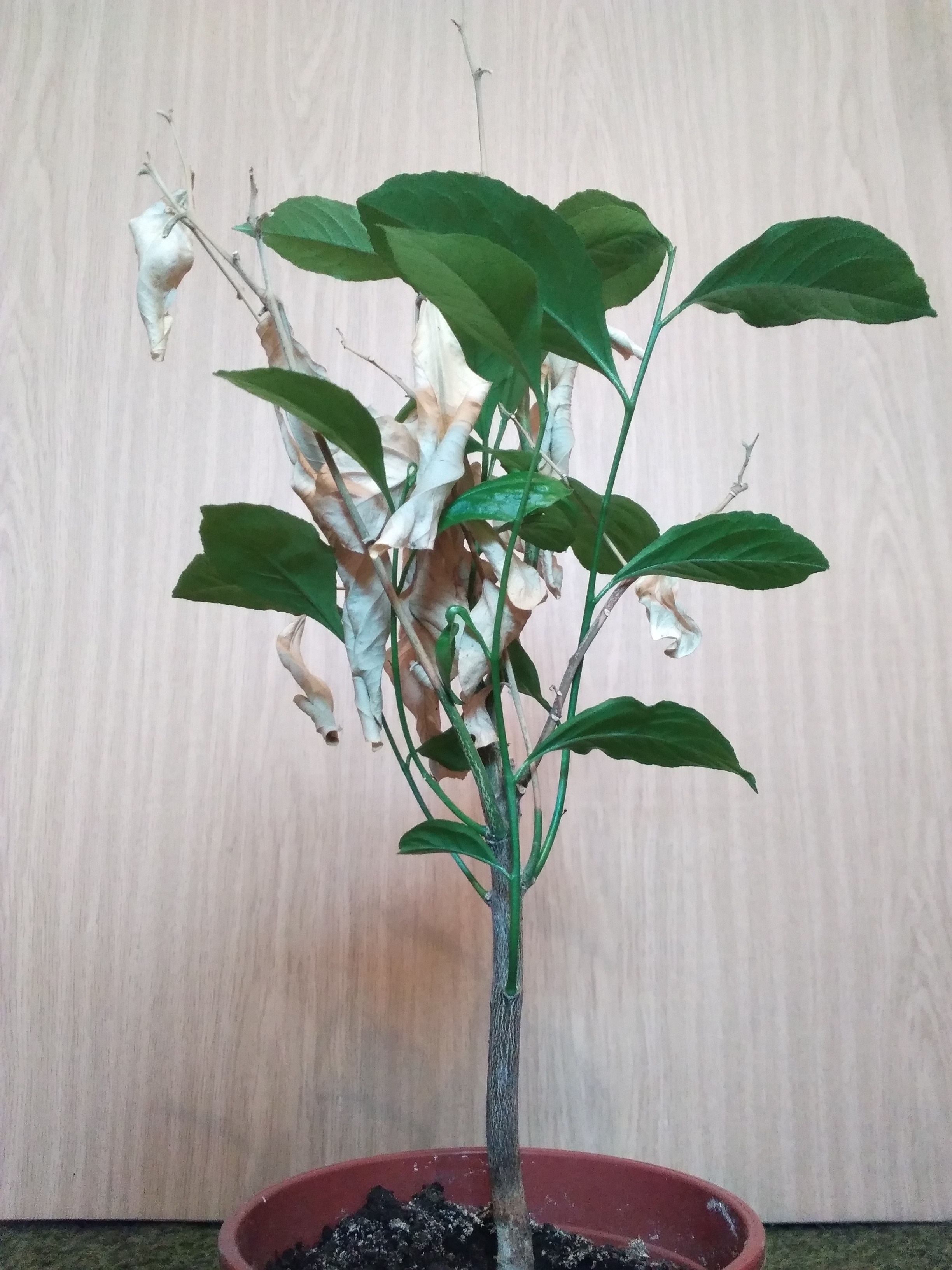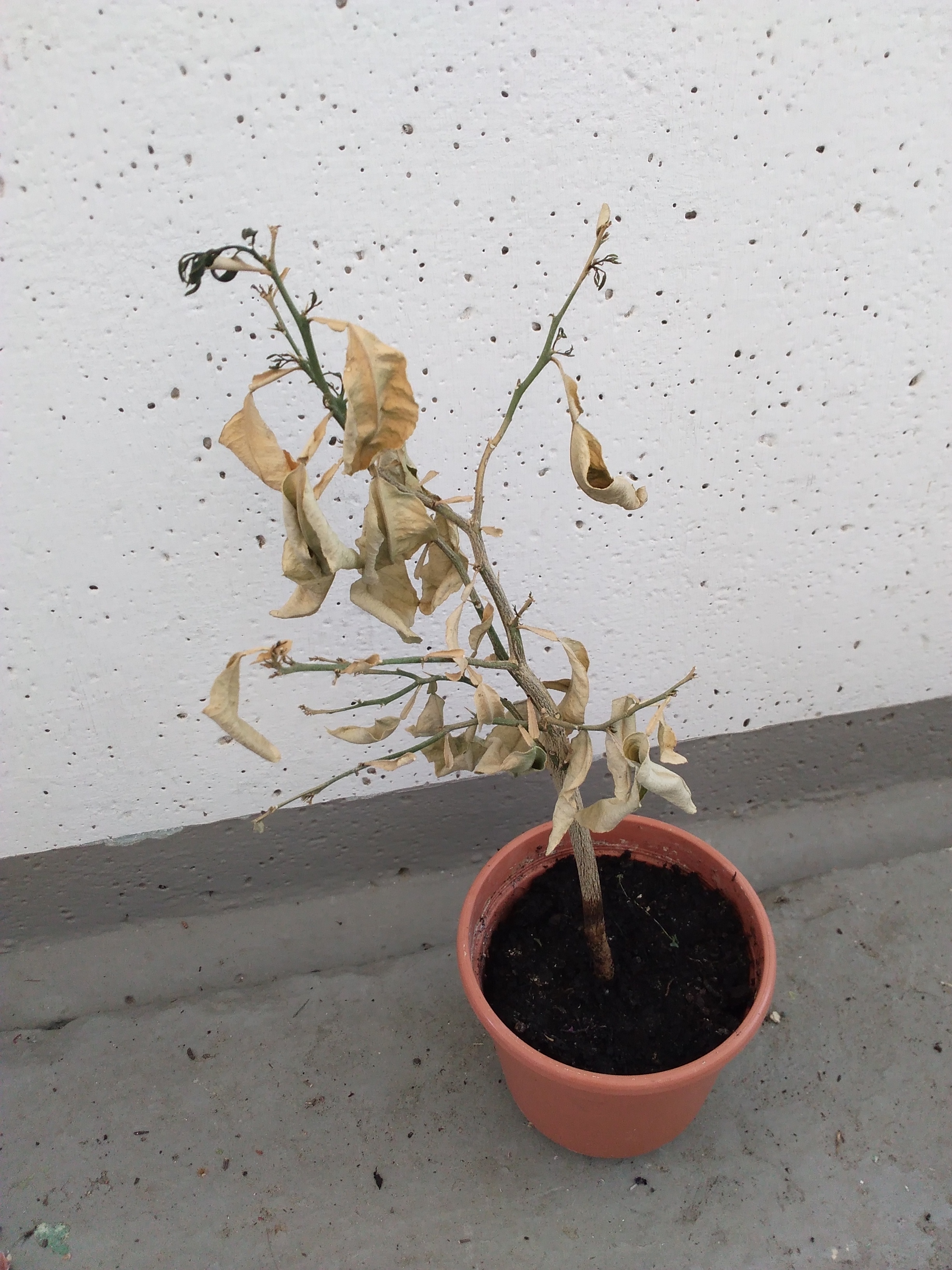 Die Bäumchen sind komplett vertrocknet, das Substrat auch gänzlich ausgetrocknet! Die Bäumchen hatten fast die ganze Zeit in der Sonne gestanden und sind wahrscheinlich nur spärlich gegossen worden! Die letzten drei Tage gar nicht mehr gegossen!
