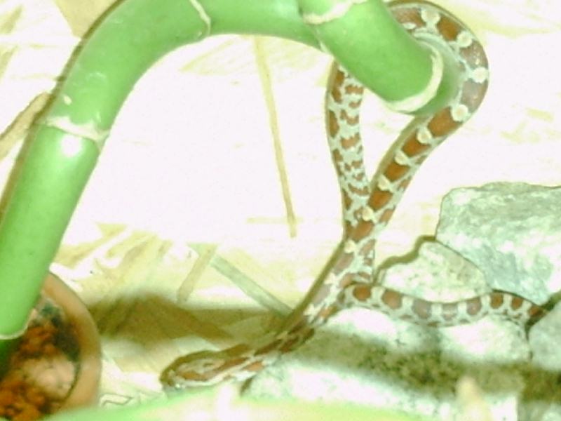 hier möchte ich euch mal spaghetti vorstellen.sie ist ca. 40-45 cm lang und an der dicksten stelle hat sie nen durchmesser von vielleicht 7mm. ein sehr schönes,interessantes tierchen sie oder er will irgendwann mal eine schlange werden...im moment allerdings nur ein etwas größerer wurm.ist eine kornnatter.teilt sonst noch jemand hier die leidenschaft für kornnattern?