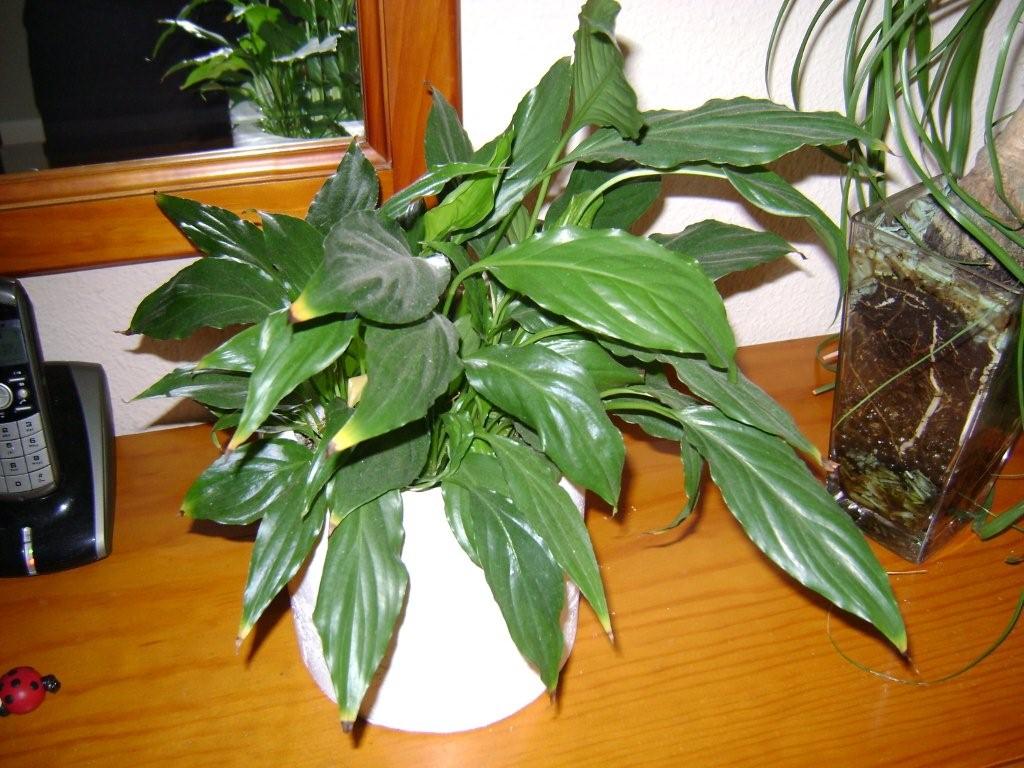 Das Spatiphyllum an sich schaut noch sehr gesund aus.