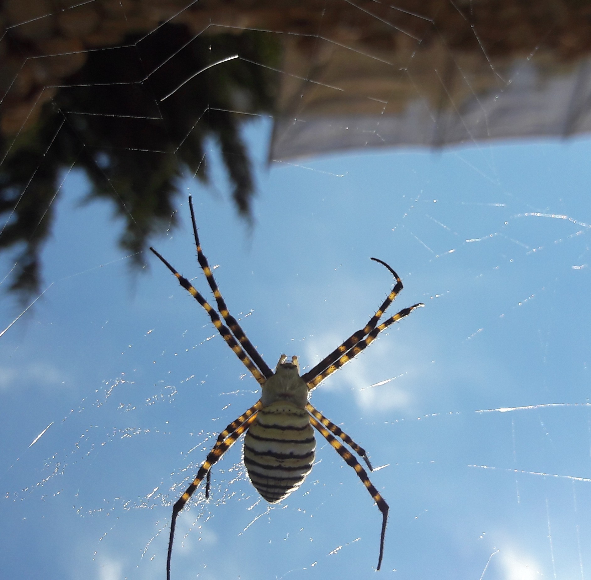 Die Erste der oben gezeigten Spinne heißt Argiobe trifasciata, die Zweite Cyrtophora citricola. Sie baut wunderschöne Baldachinnetze, meist in Agaven oder Kakteen. Diese Spinne würde von selbst nie ihr Netz verlassen.