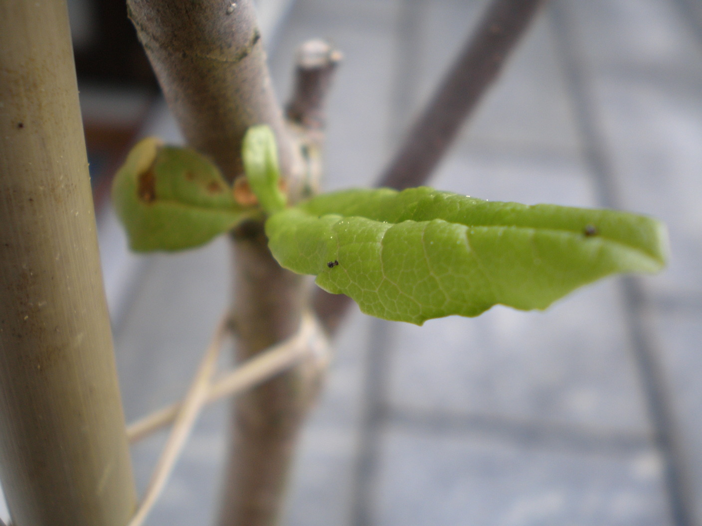 Neugetriebene Blätter bekommen nach kurzer Zeit braune Flecken und werden schließlich gelblich und welk.