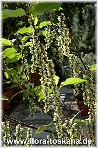 Info: gelbe Perlenschnur-Blütenstände; kleinwüchsige Sträucher; exotisch & trotzdem sicher frostfest