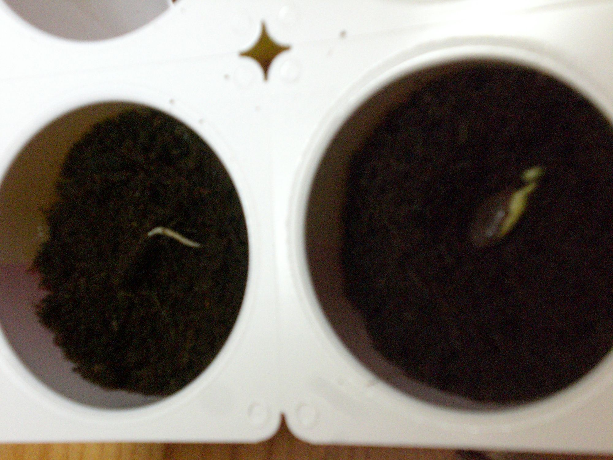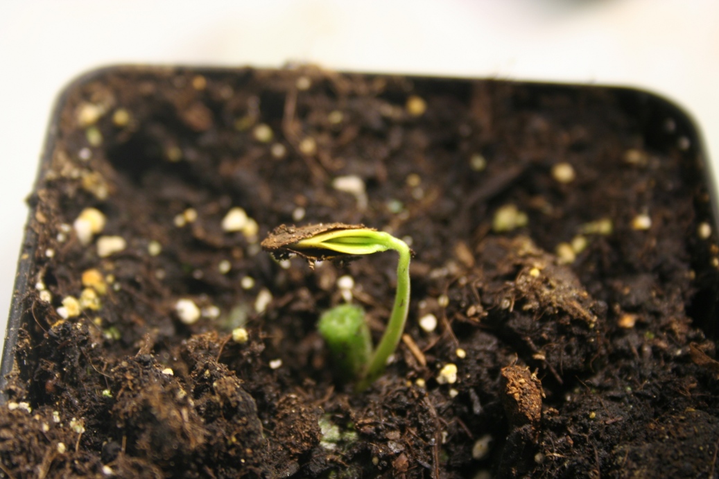 (Bild ist zwar leider unscharf, aber das der rechte sich grad aus dem Samen zwängt is glaub gut erkennbar ^^ den linken hab ich kurz mal hingelegt um die Wurzel zu zeigen)