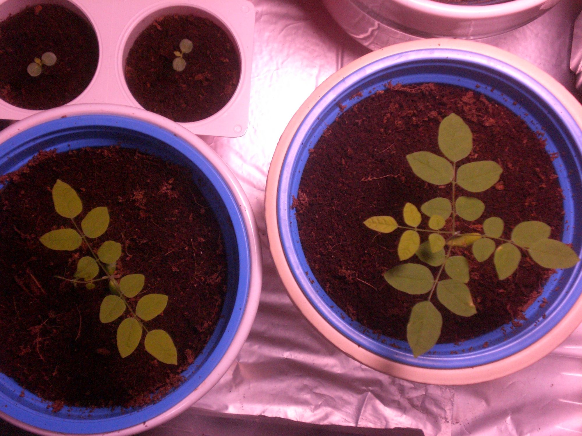 Meine "Große" treibt grad das fünfte Blatt, die kleinere Pflanze das vierte.