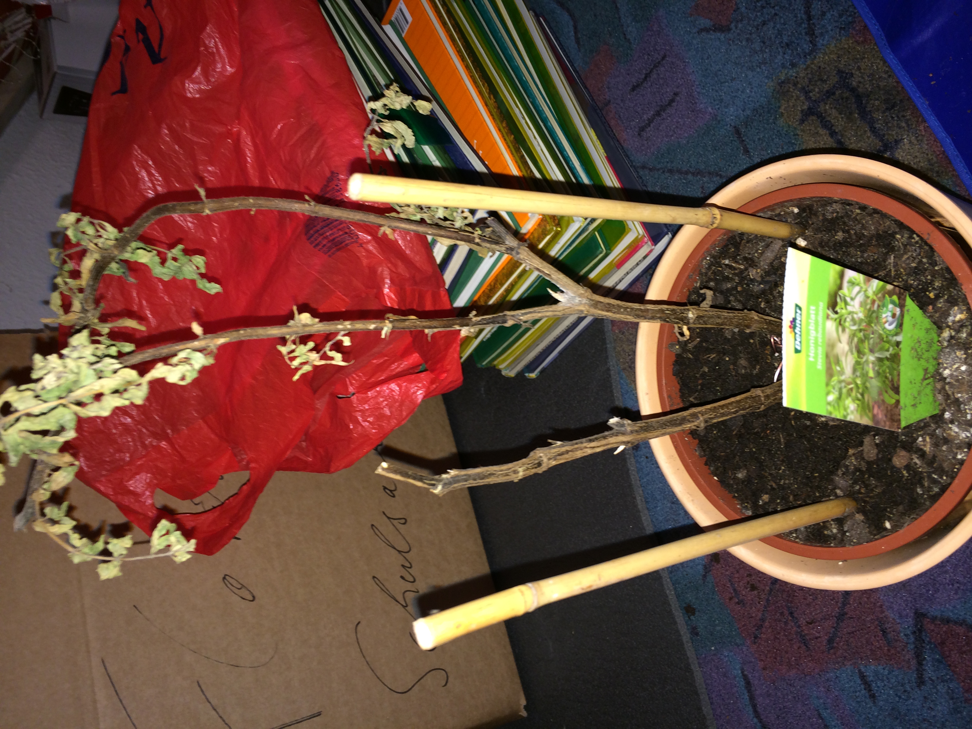 Jetzt sind die Stängel der Stevia, welche eigentlich schon groß war, richtig hölzern und die Blätter verwelkt.