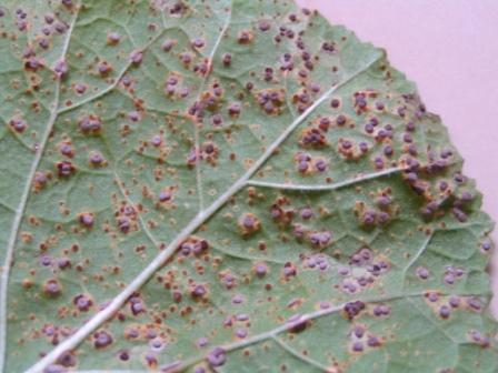 Wer ist schuld dran, dass meine Stockrosen Flecken und kleine Knubbel an der Blattunterseite haben?