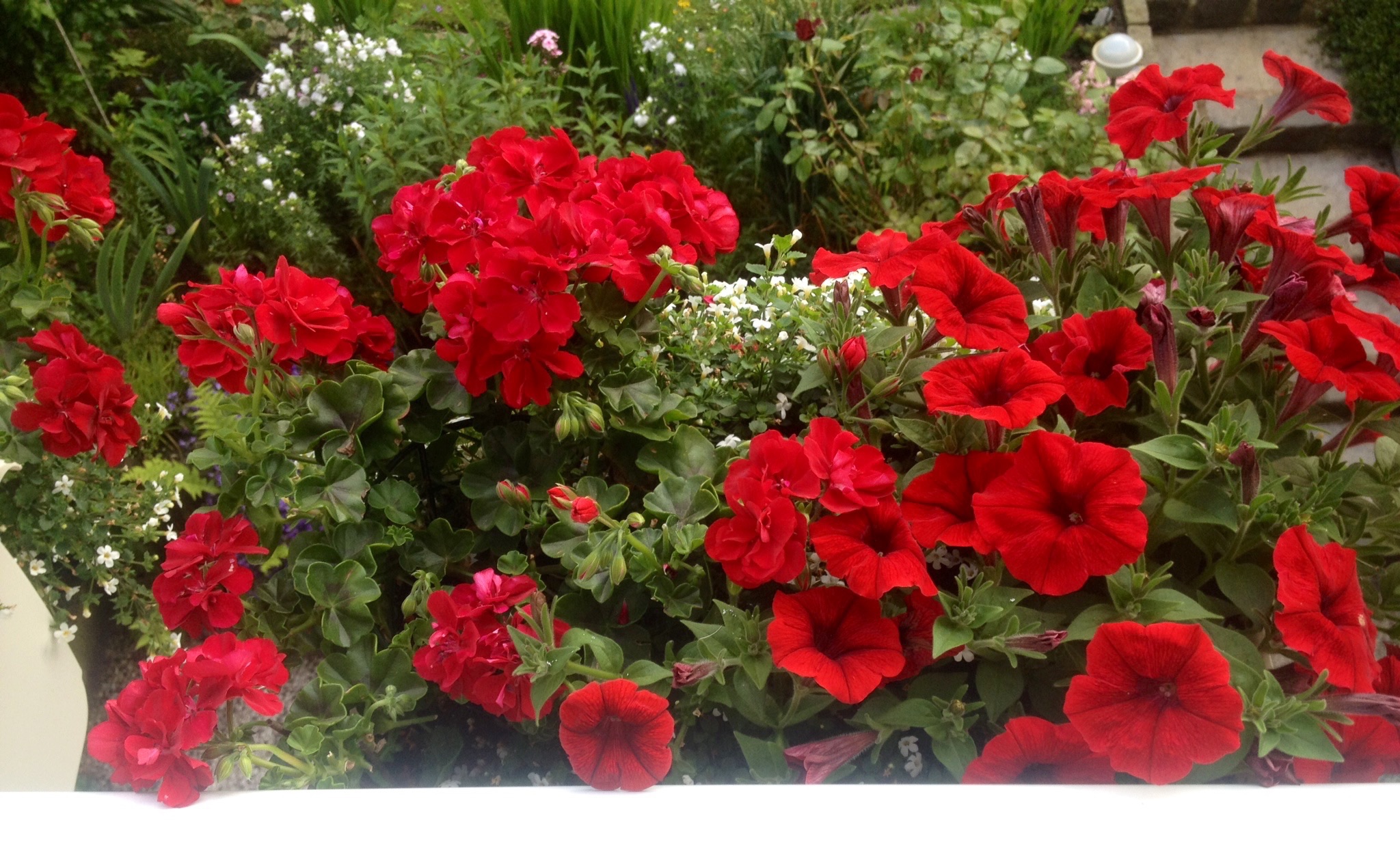 Auf meinen Balkonkästen hatte ich letztes Jahr wunderschöne,dunkelrote Geranien,die sahen einfach nur toll aus!!