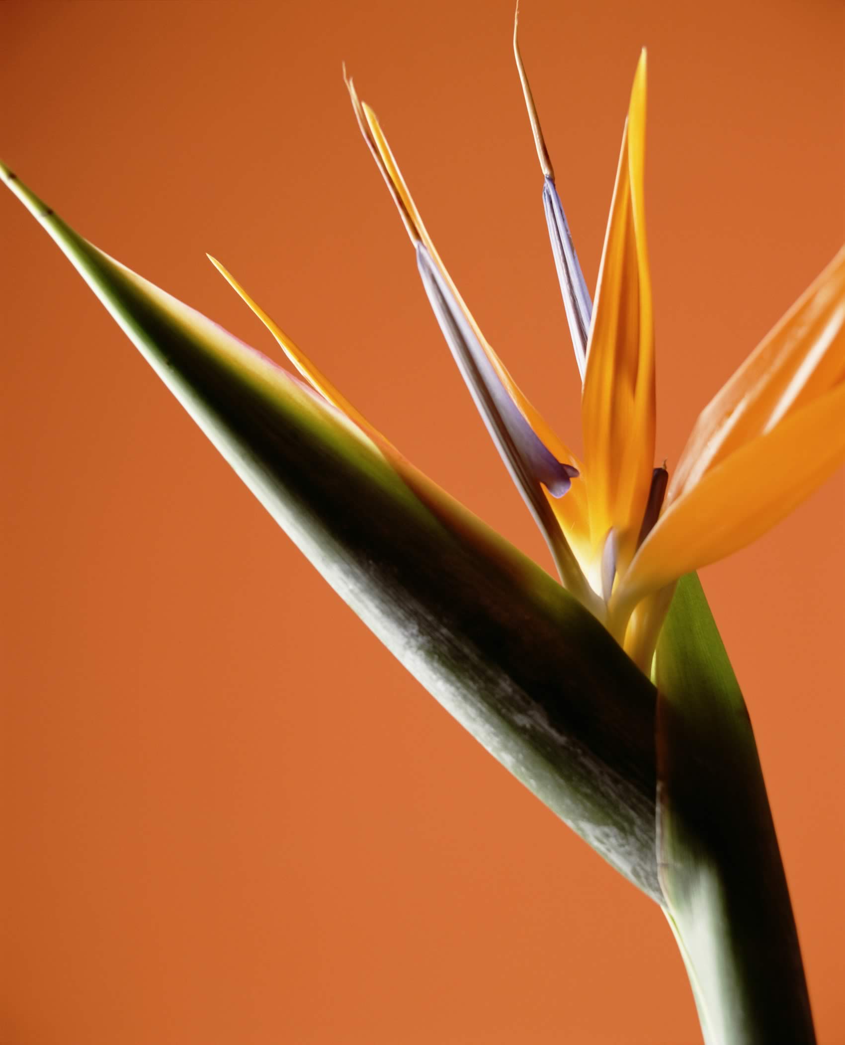 Von wahrhaft hinreißender Schönheit ist Strelitzia reginae, zu deutsch Paradiesvogelblume genannt. Die etwa 40 bis 50 cm langen, schmalen, dunkelgrünen Blätter stehen aufrecht an langen Stielen. Im Sommer und Herbst erscheinen bis zu 20 cm lange, blau/orangefarbene Blüten, die in Verbindung mit dem Hochblatt wie ein exotischer Vogelkopf aussehen.