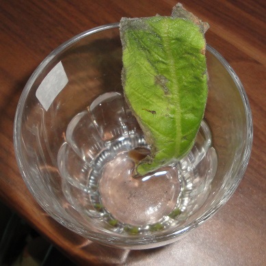 Ich habe vor einigen Tagen vier Streptocarpusblätter bekommen und habe sie, wie von der Verkäuferin beschrieben in ein Glas mit 1 bis 2cm Wasser getan.