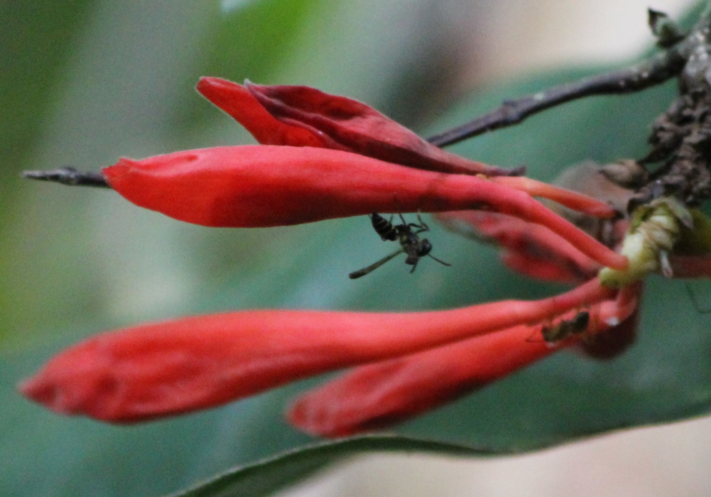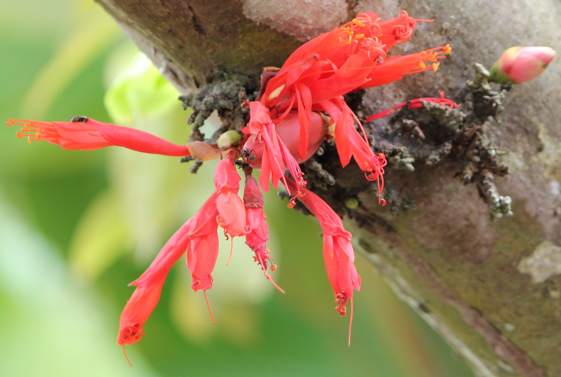 Auch bei diesem Baum wachsen die Blüten, zum Teil, direkt aus dem Stamm. Er steht etwa 15 Kilometer von der Küste entfernt, im Landesinnere. Keine Ahnung, was es sein könnte. Wer hat eine Idee?