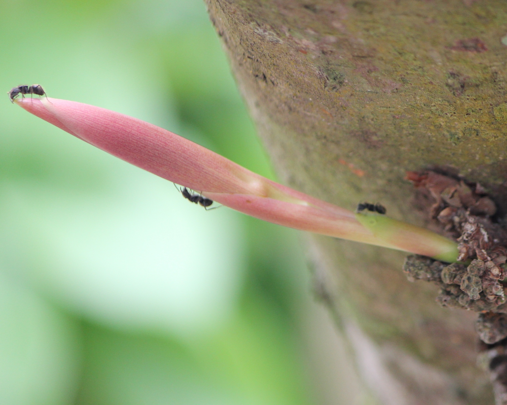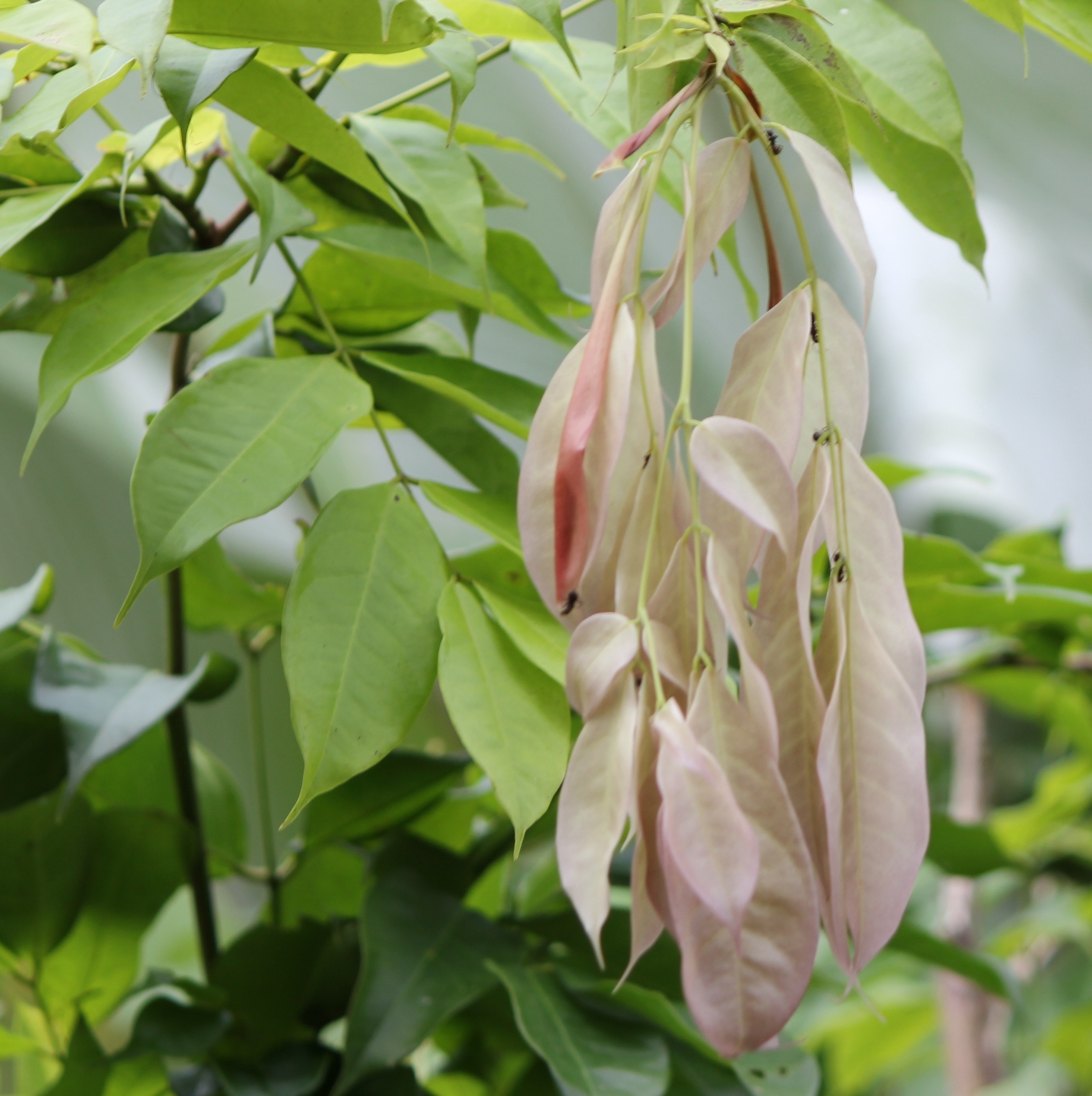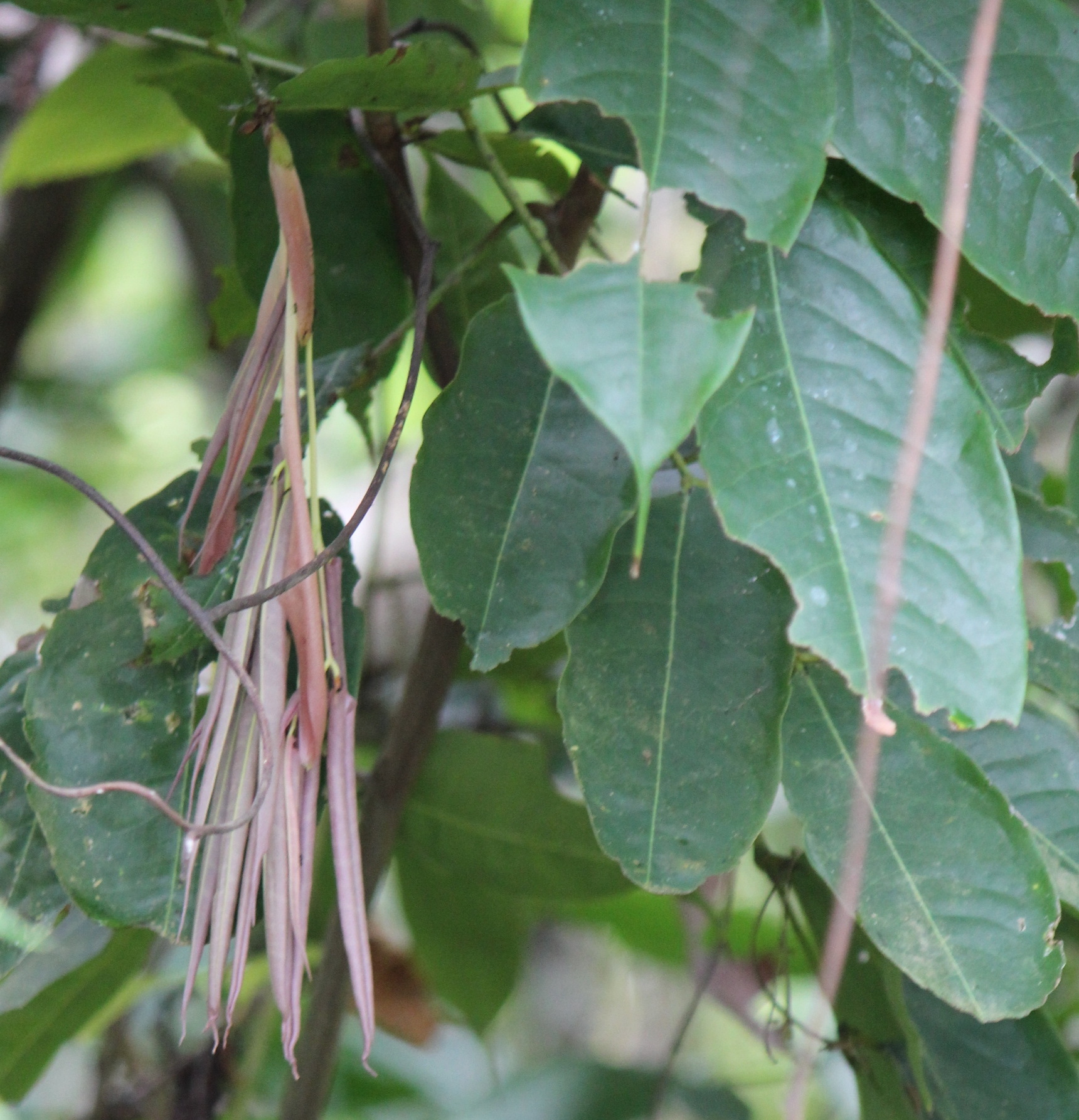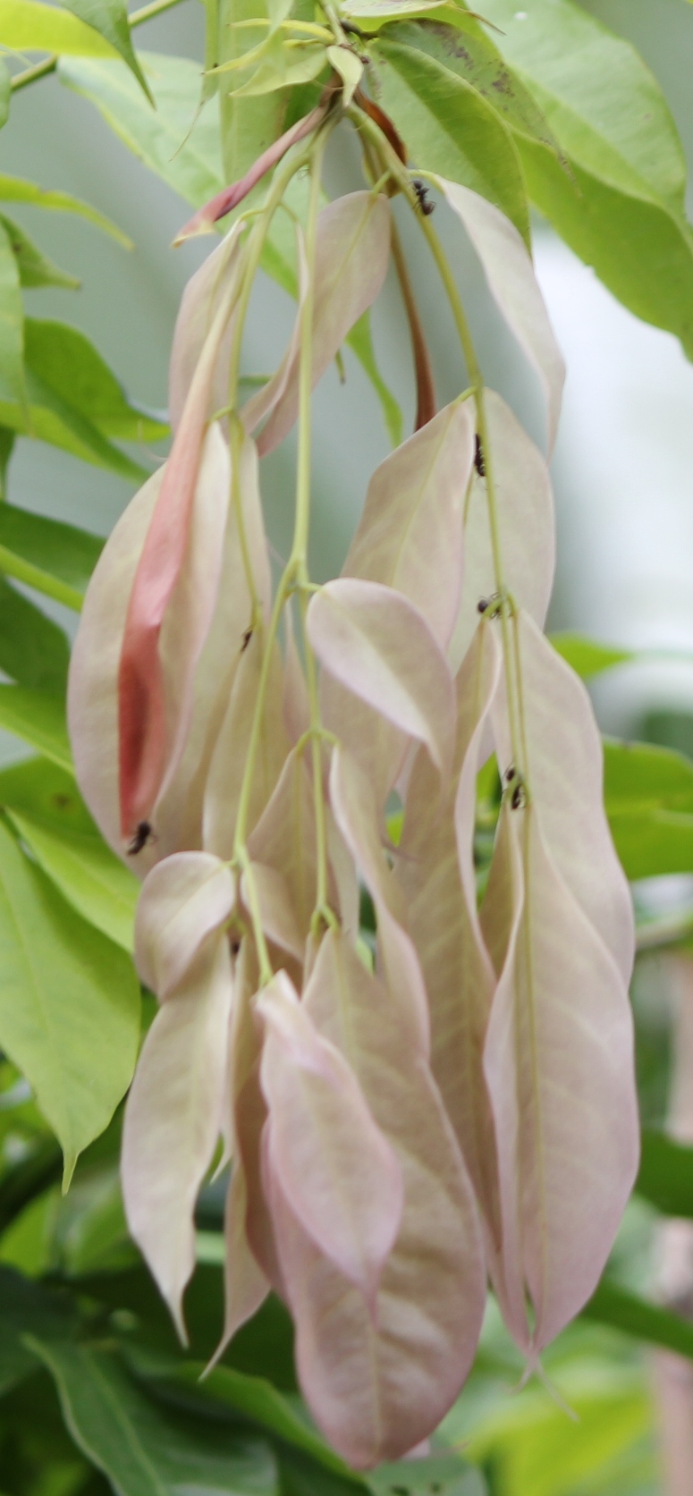 Auch bei diesem Baum wachsen die Blüten, zum Teil, direkt aus dem Stamm. Er steht etwa 15 Kilometer von der Küste entfernt, im Landesinnere. Keine Ahnung, was es sein könnte. Wer hat eine Idee?