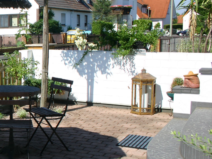 ich möchte gerne eine weiße Mauer bepflanzen (auf dem Bild rechts wo die Laterne davor steht).