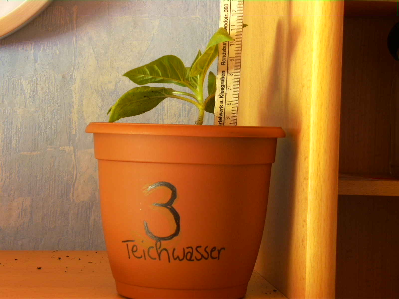Naja bis jetzt erhielt ich noch keine Antwort...Deshalb dachte ich mir, dass ich euch einfach mal nach einer Erklärung frage, da mir hier ja schon sehr viel geholfen wurde. Außerdem wurde es ja auch mal wieder Zeit euch auf dem laufenden zu halten Wenn ihe sonst noch Fragen bzgl. der Facharbeit oder der Versuche habt, bzw. euch Zwischenergebnisse interessieren, könnt ihr natürlich ruhig nachfragen...Achja und was ich mir auch nicht erklären kann, ist, dass die Pflanze, die mit dem destillierten Wasser gegossen wird, eigentlich recht gut wächst oO zwar etwas langsamer im Vergleich, und die Erde trocknet vergleichsweise auch rascher aus, aber ansonsten sind keine negativen Auswirkungen an ihr zu erkennen... Mh... Die Erde der mit dem Teichwasser gegossenen Pflanze trocknet übrigens ähnlich schnell aus... Und die mit dem Leitungswasser gegossene Pflanze wächst am besten/schnellsten...Ist aber der Pflanze, die mit Mineralwasser gegossen wird, sehr ähnlich was die Größe angeht...