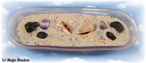 Mit etwas Sand,Steine,Muscheln,Glitterflitter,Perlen und Edelsteinchen