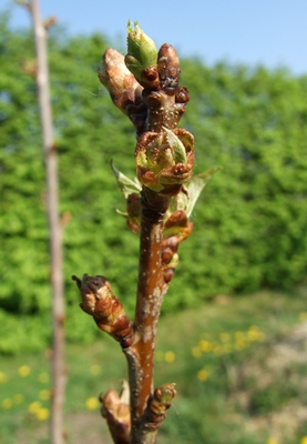 wo ich deine Fotos sehe. Meine Kirsche sieht fast exakt genauso aus, habe sie auch vor ca. 4 Wochen gepflanzt, zudem habe ich an den ausgetriebenen Blättern kleine grüne Raupen (die Blätter sind zusammengerollt).