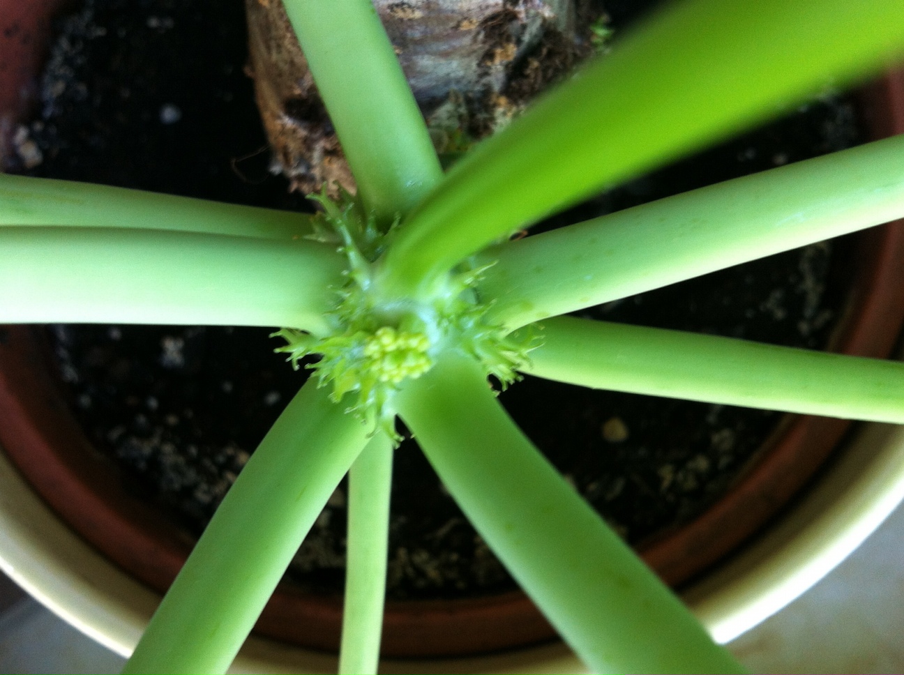Mein Baobab - Adansonia madagascariensis - macht nach einer sehr langen Ruhe einen Neuaustrieb