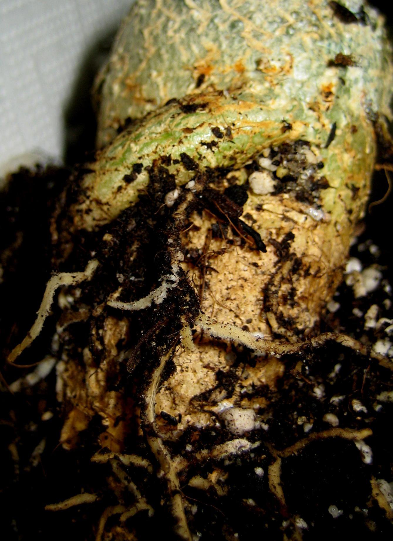 Auf jeden Fall eine der dankbarsten Caudexpflanzen überhaupt. Ich hatte meine völlig trocken überwintert und im Frühjahr vollständig von den alten vertrockneten Wurzeln befreit und in einen total unterdimensionierten Porzellanbecher ohne jede Drainage gepflanzt. Irgendwie mag ich die Vorstellung von einem riesigen Caudex in einem Fingerhut